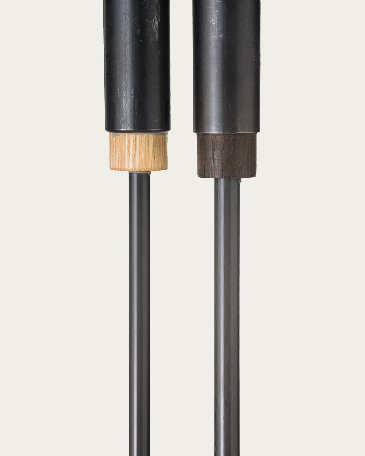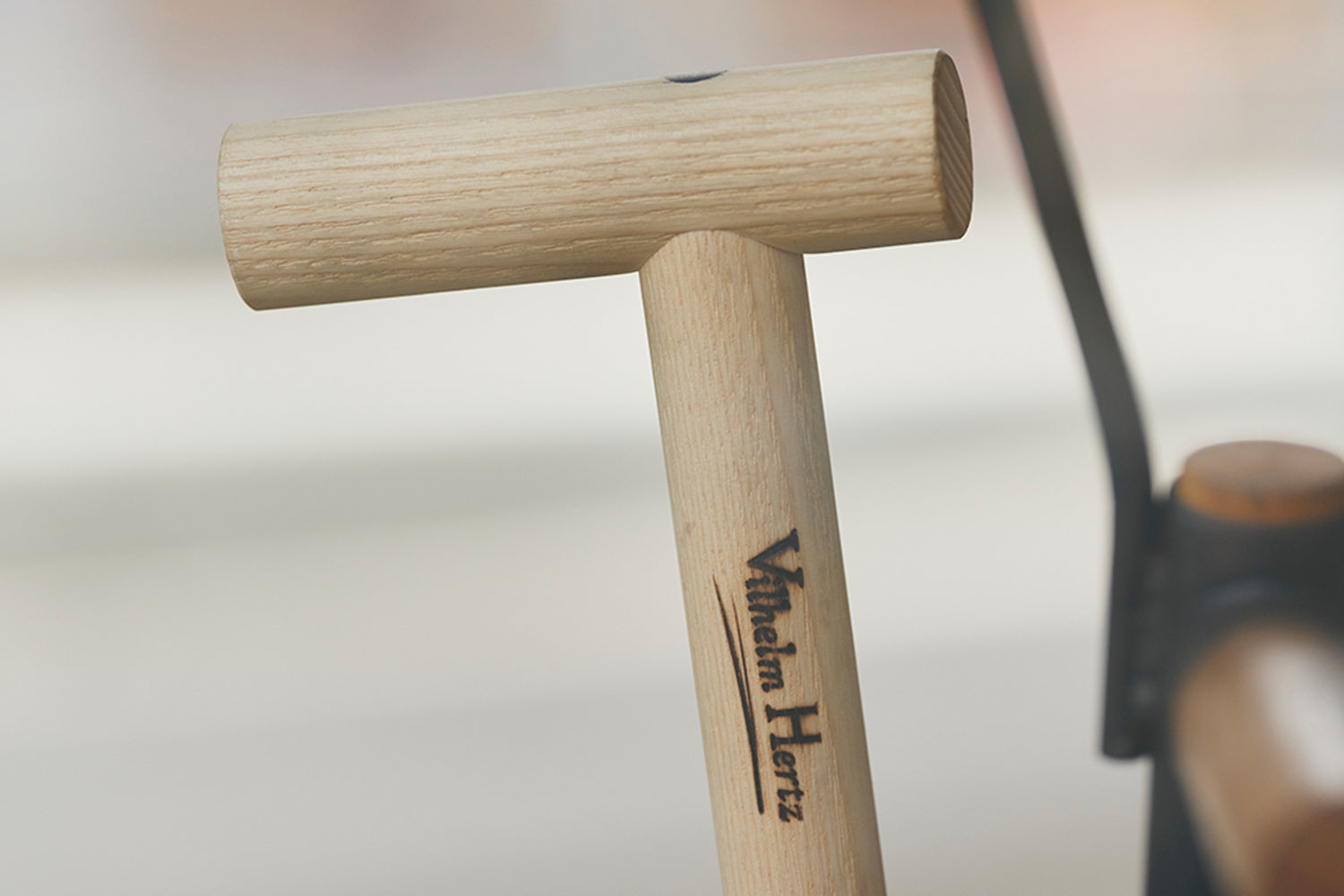 北欧神話でも重要なシンボルとして描かれる樹木、ヨーロピアンアッシュ(西洋トネリコ)、日本ではホワイトアッシュという木材を使用しています。日本で木部の製造を協働しているのが、椅子をつくり続けて60年の歴史を持つ「平田椅子製作所」。「人を支える道具」というコンセプトに共感し合い実現しました。平田椅子製作所で作られる家具からどうしても出てしまう端材を活かして、杖の木部の製作をして頂いています。なるべく持続可能であるものづくりを考え、家具の製作をする工房と協働したからこそ実現しました。
